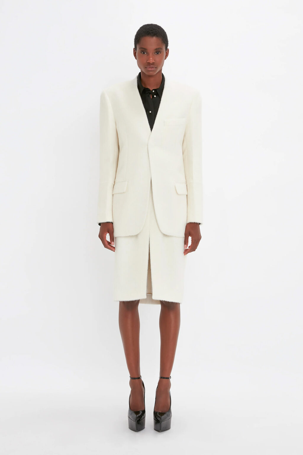 Reimagined in a soft shade of cream, this lambswool Polo Neck has subtle design details such as a contrasting ribbed neck. A saddle shoulder design adds further interest. Wear the neck folded over or upright. Buy this product on victoriabeckham.com